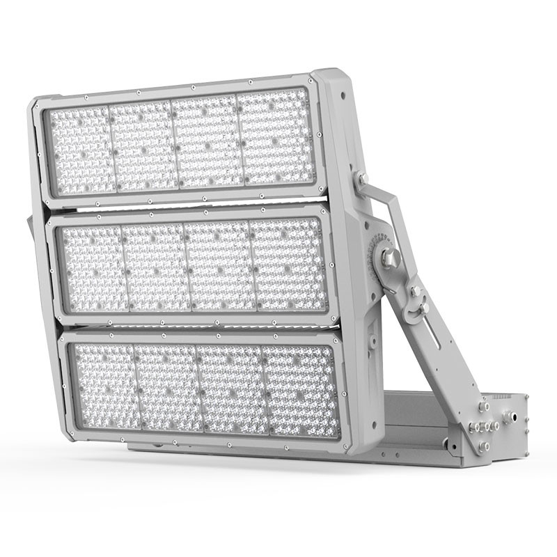 Đèn sân thể thao LED 1800W là thiết bị chiếu sáng ngoài trời được thiết kế để chiếu sáng các sân thể thao, cánh đồng và các khu vực ngoài trời rộng lớn khác cần ánh sáng có công suất cao.Với hiệu suất phát sáng cao 151 lumen trên watt, những đèn thể thao LED này cung cấp khả năng chiếu sáng hiệu quả và sáng trong khi tiêu thụ ít năng lượng hơn so với các công nghệ chiếu sáng truyền thống.